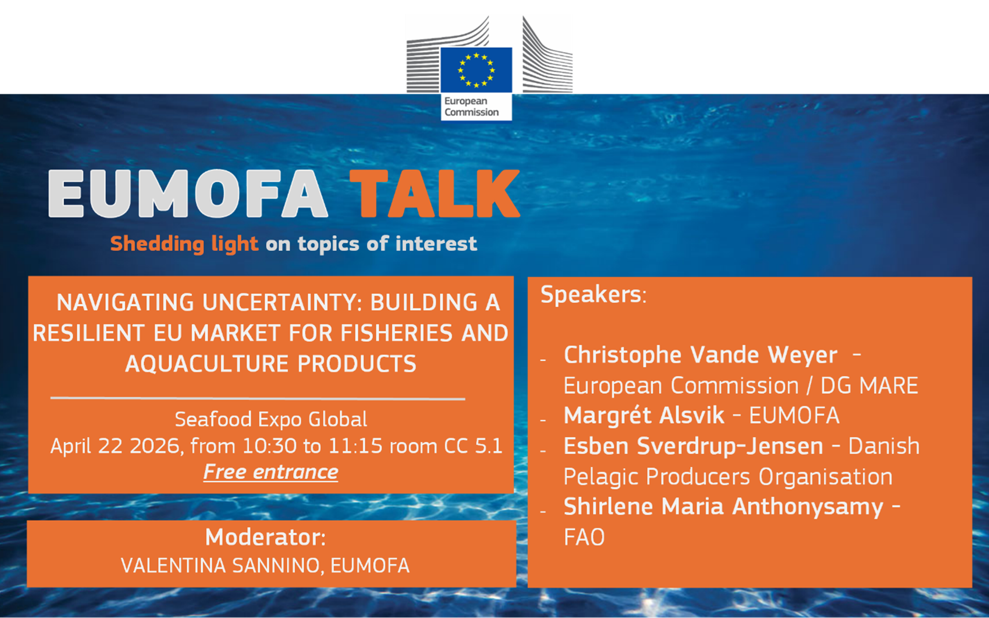 EUMOFA Talk at Seafood Expo Global 2026 - Navigating Uncertainty: Building a Resilient EU Market for Fisheries and Aquaculture Products / Free and open to all
